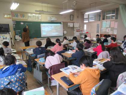 3月2日(火)学校の様子 公開日 2022/03/02 更新日 2022/03/02 お知らせ 3年生の体育の様子です。跳び箱を跳んでいました。台上前転にも挑戦していました。 1年生の生活科の様子です。ニコニコ大作戦の発表会をしていました。 4年生の社会の様子です。島の暮らしについての学習問題を作っていました。