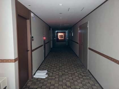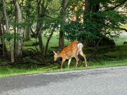 起床前です。外は涼しく、ホテル前に鹿がいました。