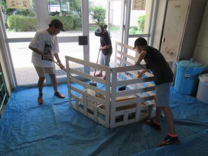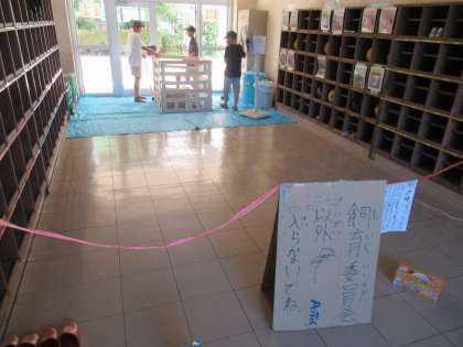 はあまりにも暑いので、夏休み中は北校舎の昇降口に引っ越しをしていました。