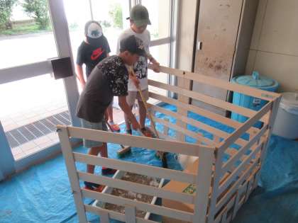 飼育委員会の子供たちが、夏休み中、交代で烏骨鶏の世話をしてくれました。飼育小屋で