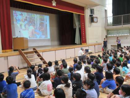 9月4日(月)全校朝会 公開日 2023/09/04 更新日 2023/09/04 お知らせ 体育館で全校朝会を行いました。校長先生は、夏休みの大蔵小での出来事を写真を使って話をしました。 新しい管理員さんや教育実習生の紹介、そして2年生で消防写生会で優秀な成績を修めた児童の表彰を行いました。