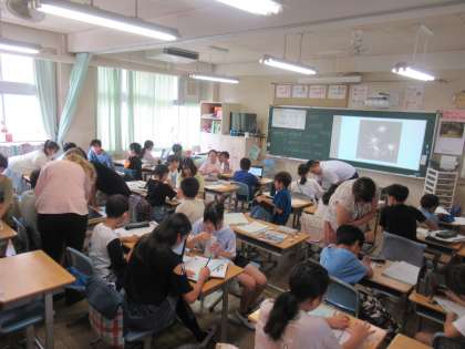 イングリッシュウィークで、ネイティブの人がALTの他に教室に入っています。