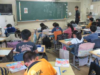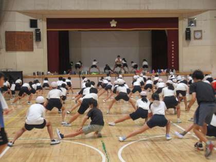 10月4日(水)学校の様子 公開日 2023/10/04 更新日 2023/10/04 お知らせ 5年生の体育の授業の様子です。体育館で運動会で踊るソーラン節の練習を行っていました。舞台の上には、実行委員がいて、動きの手本として頑張っていました。 6年生の習字の様子です。」。先生から説明を聞いて書き始めていました。 3年生の道徳の授業の様子です。「いのち」について考えていました。