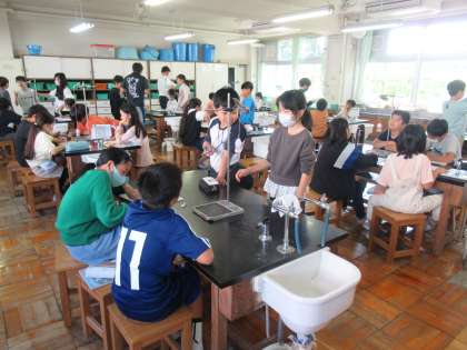 5年生の理科の学習の様子です。ふりこの実験をしていました。1往復が1秒のふりこにするにはどうしたらよいか実験を通して考えていました。