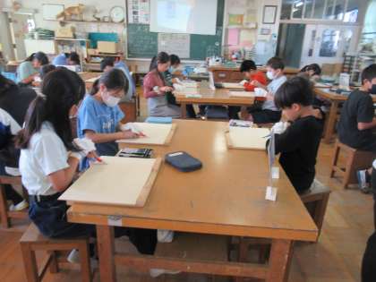 10月17日(火)学校の様子 公開日 2023/10/17 更新日 2023/10/17 お知らせ 2年生が50メートル走の練習を行っていました。そのあと、ダンスの練習があるようです。 5年生の図工の様子です。彫刻刀の使い方について、改めて指導をしていました。 3年生の書写の様子です。お手本を見ながら、一生懸命書いていました。