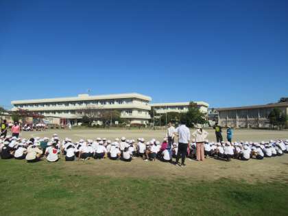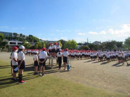 10月24日(火)全校練習 公開日 2023/10/24 更新日 2023/10/24 お知らせ 1時間目に、運動会に向けての全校練習を行いました。主な練習は、開閉会式・体操の隊形への移動と、準備運動。そして座席の確認です。はじめの言葉を言う1年生も朝礼台に上がる練習をしました。当日まであと4日です。