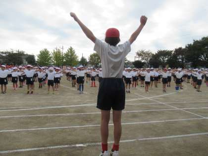 10月28日(土)運動会の様子 公開日 2023/10/28 更新日 2023/10/28 お知らせ いい天気のもと運動会を開催いたしました。多くの保護者の方、ご来賓の方においでいただき、子供たちも練習の成果を十二分に発揮した素晴らしい運動会になりました。 開会式の様子です。1年生のはじめのことば、スローガン発表、準備運動の様子です。