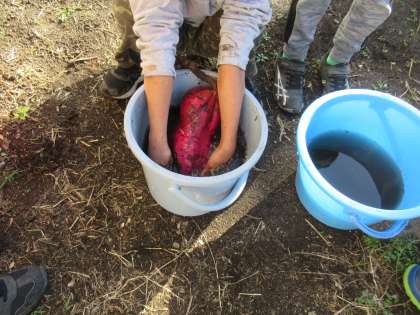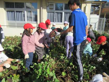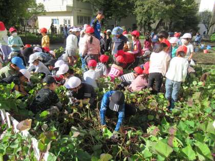 2年生が畑に植えたさつまいもを掘りました。地域の方が耕してくださった畑で育ったさつまいもは、大きなものがたくさん掘れました。