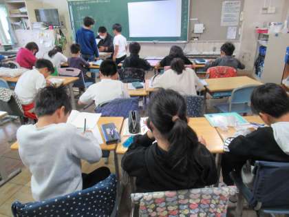 4年生の総合的な学習の時間の様子です。町田の丘学園との交流に向けて準備を進めていました。