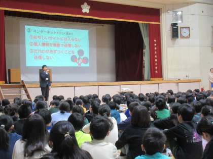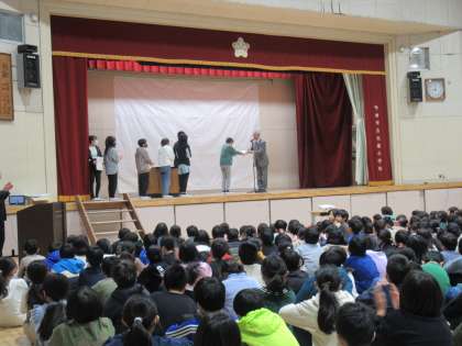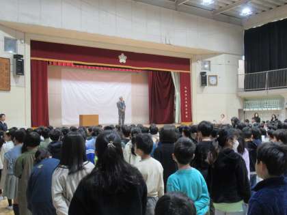 終業式を体育館で行いました。校長先生は、2学期の目標が達成できたかどうか子供たちに聞きましたが、元気よく手を挙げた児童が少なかったです。謙遜しているのかもしれません。その後、生活指導担当の先生より冬休みの過ごし方について話がありました。そして、頑張った児童の紹介をしました。町田市子どもマラソン大会や税に関する絵葉書コンテスト、剣道大会、野球大会等で頑張った児童を紹介しました。