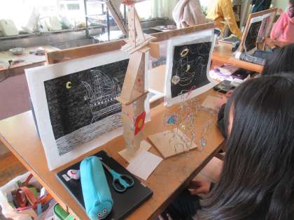 1月18日の学校の様子 公開日 2024/01/18 更新日 2024/01/18 お知らせ (上)展覧会に向けて作品の制作も大詰め!どんな作品に仕上がっているか楽しみですね♪ (下)算数の勉強、がんばってます。習ったことをもとに、問題を解決することができました! 全学年