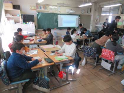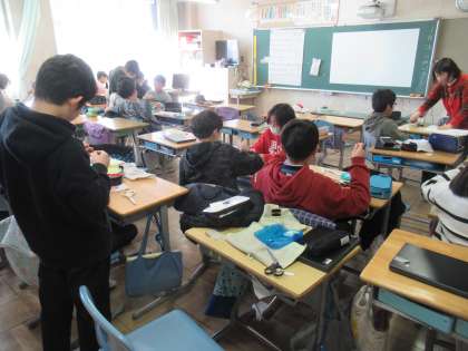 1月25日(木)学校の様子 公開日 2024/01/25 更新日 2024/01/25 お知らせ この冬1番の寒さとなり、校庭も水が浮いてしまいました。 6年生の家庭科の様子です。在校生に送るぞうきんを作っていました。 4年生の国語の様子です。熟語について調べていました。