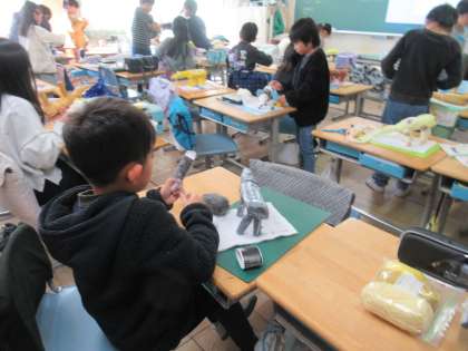1月26日(金)学校の様子 公開日 2024/01/26 更新日 2024/01/26 お知らせ 3年生が展覧会に出す作品の仕上げを行っています。出来上がった動物に毛糸を巻いていきます。 2年生はできた立体作品を体育館に運び入れていました。 4年生の図工の様子です。細長く切った画用紙を、組み合わせて形を作っていくようです。