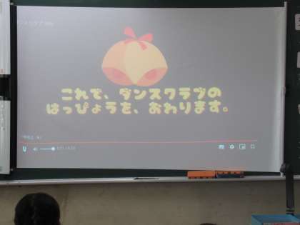1月31日(水)ダンスクラブ発表 公開日 2024/01/31 更新日 2024/01/31 お知らせ 本日の集会はダンスクラブの発表集会でした。事前に録画しておき、それを各クラスで見ました。1年生も上級生が楽しそうに踊っている姿を真剣に見ていました。まだ練習中の様子もメイキングという形で流しました。