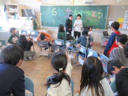 2月27日(火)6年生を送る会 公開日 2024/02/27 更新日 2024/02/27 お知らせ 本日、6年生を送る会を行いました。今年度は、異学年交流である「大蔵の輪」の中で行いました。グループ内で、学年ごとに役割を決めて、6年生に感謝の気持ちを伝えました。進行は5年生が行いました。6年生の言葉の中に「これなら、5年生に引き継いでも大丈夫だ」とありました。
