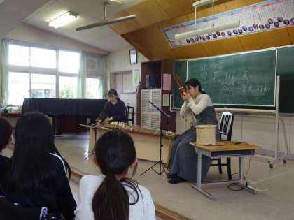 4年生「おんかつ出前授業」 公開日 2024/03/01 更新日 2024/03/01 お知らせ 4年生がピアノや和楽器(琴・笙)奏者を招き、音楽鑑賞会を行いました。 どの子も興味津々!楽器の音色や響きを味わいました。 4年