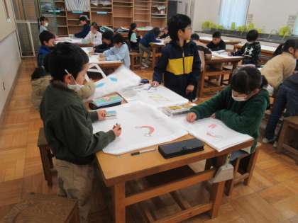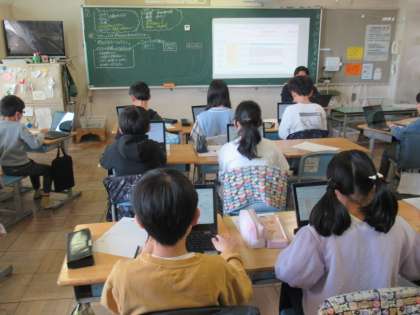 3月4日(月)学校の様子 公開日 2024/03/04 更新日 2024/03/04 お知らせ 2年生の図工の様子です。作品を持ち帰る袋に絵を描いていました。 4年生の体育の様子です。Tボール、とても楽しそうに取り組んでました。 4年生の道徳の様子です。ルールとマナーについて、考えていました。クロムブックを使って、考えの共有をしていました。