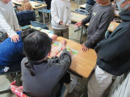 4年生の英語活動の様子です。じゃんけんですごろくを楽しんでいました。
