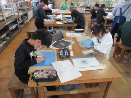 4年生の図工の様子です。彫刻刀を使って版を作っていましたが、集中して掘り進んでいました。