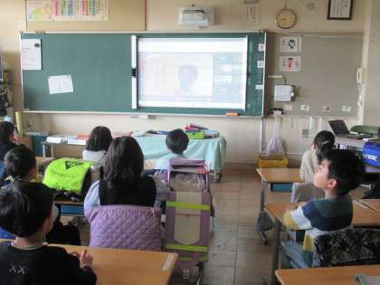 本日の全校朝会は、安全指導朝会でした。担当の先生は、3月の生活目標「一年間を振り返り、新しい学年への準備をしよう」について、具体的に話をしました。