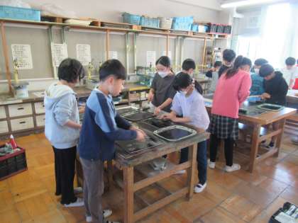 3月14日(木)学校の様子 公開日 2024/03/14 更新日 2024/03/14 お知らせ 4年生の図工の様子です。本日が今年度の最後の図工でした。版画を刷っていました。 1年生の体育の様子です。ゴム跳びをしていました。 6年生の理科の様子です。電気の学習のまとめとして、キットで確かめをしていました。