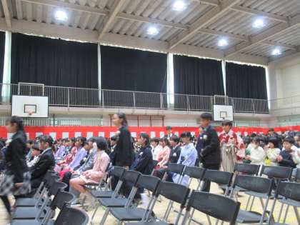6年生135名が在校生、保護者、ご来賓の方に見守られがら、本校を巣立っていきました。4月からの中学校生活では、小学校の経験の上に、さらなる飛躍を重ねていってほしいと願っています。