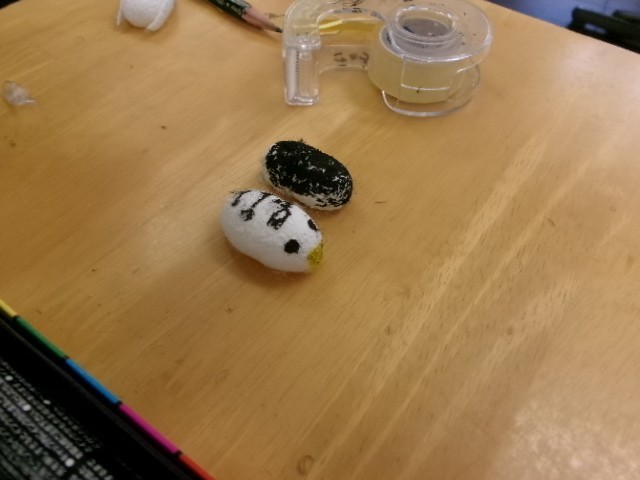 6〜7月に育てたかいこの繭を使って、糸取りや工作をしています。