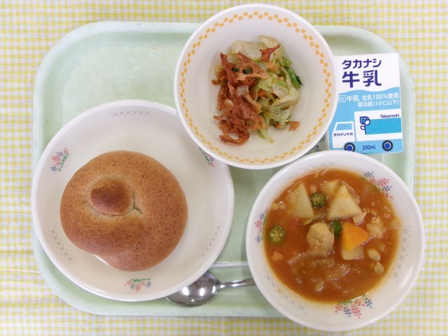 トマトやオクラが入ったカレー風味のシチューで、アフリカのケニアで親しまれている「カランガ」をもとにした料理です。