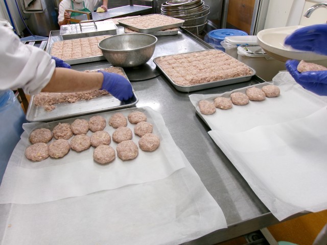 ハンバーグはひとつひとつ丸めて作っています。