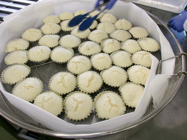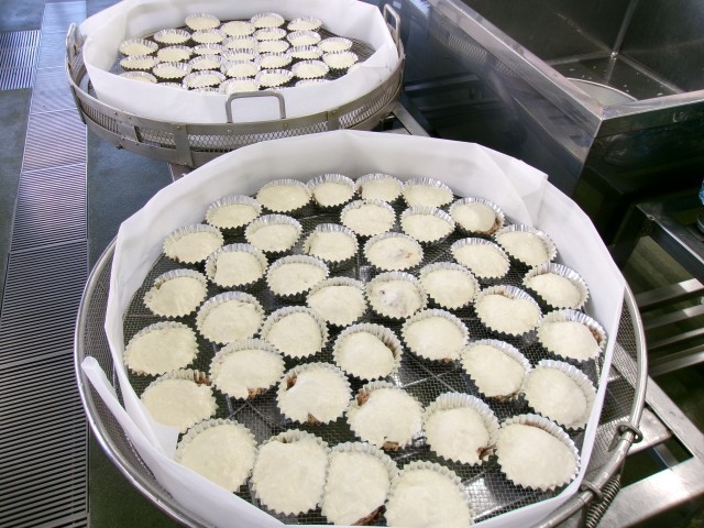 今日の肉まんは、カップに具をのせ、その上から生地を流してから蒸した、包まない肉まんです。