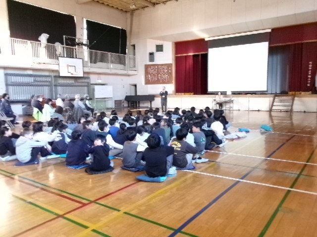 1年間に渡り、米作りをサポートしてくださった、米作りの会の皆さん、みわサポの皆さんをお招きしました。学んだことを各クラスで発表し、取れたお米をプレゼントしました。