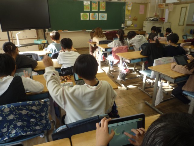 タブレットを使って絵本を作成します。そのための準備と練習をしています。自分の本ができるのが楽しみです。