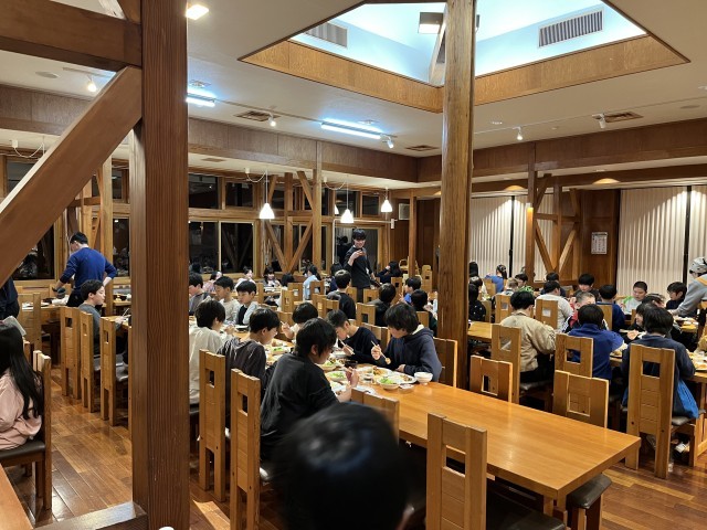 美味しい!ご馳走だ!歓声があがりました。スキーをしたので、お腹もぺこぺこ。よく食べていました。