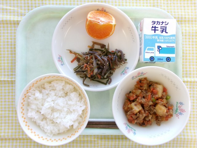 読書週間にちなんだ献立です。今日は「ごんごろじゃがいも」という本から、じゃがいもを使った献立でした。