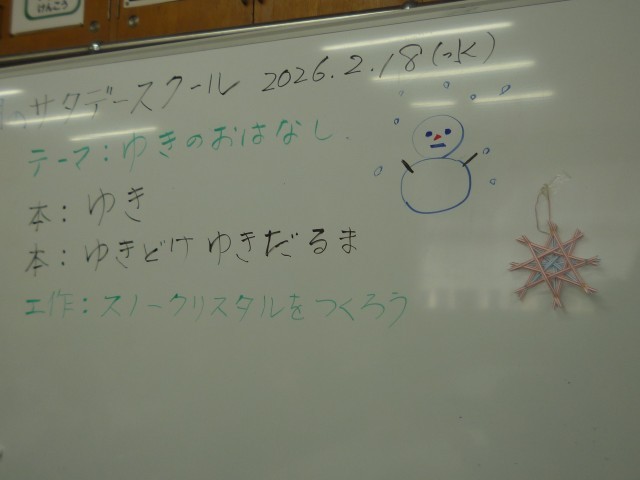 雪の本を読んでいただきました。その後、ストローで工作をしました。ちょっと難しかったのですが、スノークリスタルが完成して嬉しそうでした。