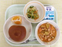 今日の献立 ・牛乳 ・ごはん ・松風焼き ・紅白なます ・米粉のお雑煮