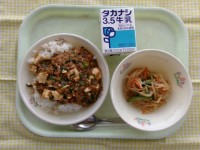 <4月15日の献立>・牛乳・麻婆豆腐丼・はるさめサラダ子供たちは毎日もりもり給食...