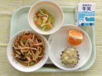 ~2月20日の献立~・牛乳・味噌煮込みうどん・鬼まんじゅう・キャベツの甘酢あえ・果物(麗紅)今日は愛知県献立でした。味噌煮込みうどんは、八丁味噌を仕立てのうどんです。鬼まんじゅうは、さつまいもと小麦粉...