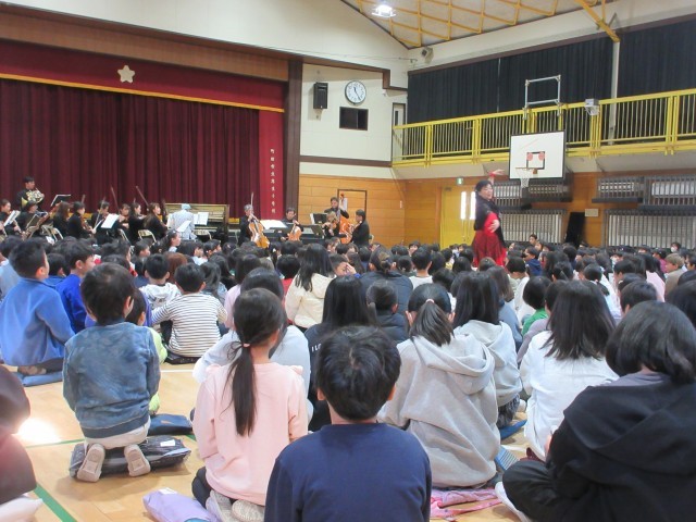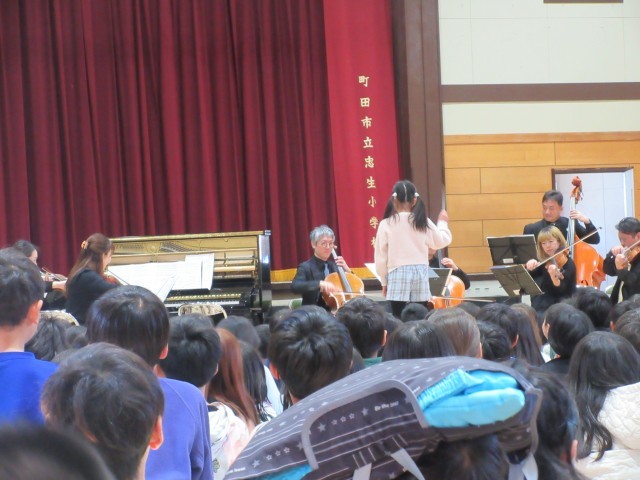 12月08日(月)、笑顔と学びの体験活動プロジェクトが行われ、青島広志・ブレーメンオーケストラによる演奏を聴きました。
