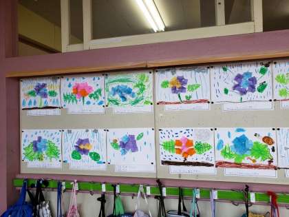 各学年の廊下を巡回していると、子どもたちの作品の掲示に出会います。いろいろな学習を通してできた作品です。ちょっとご紹介します。校長