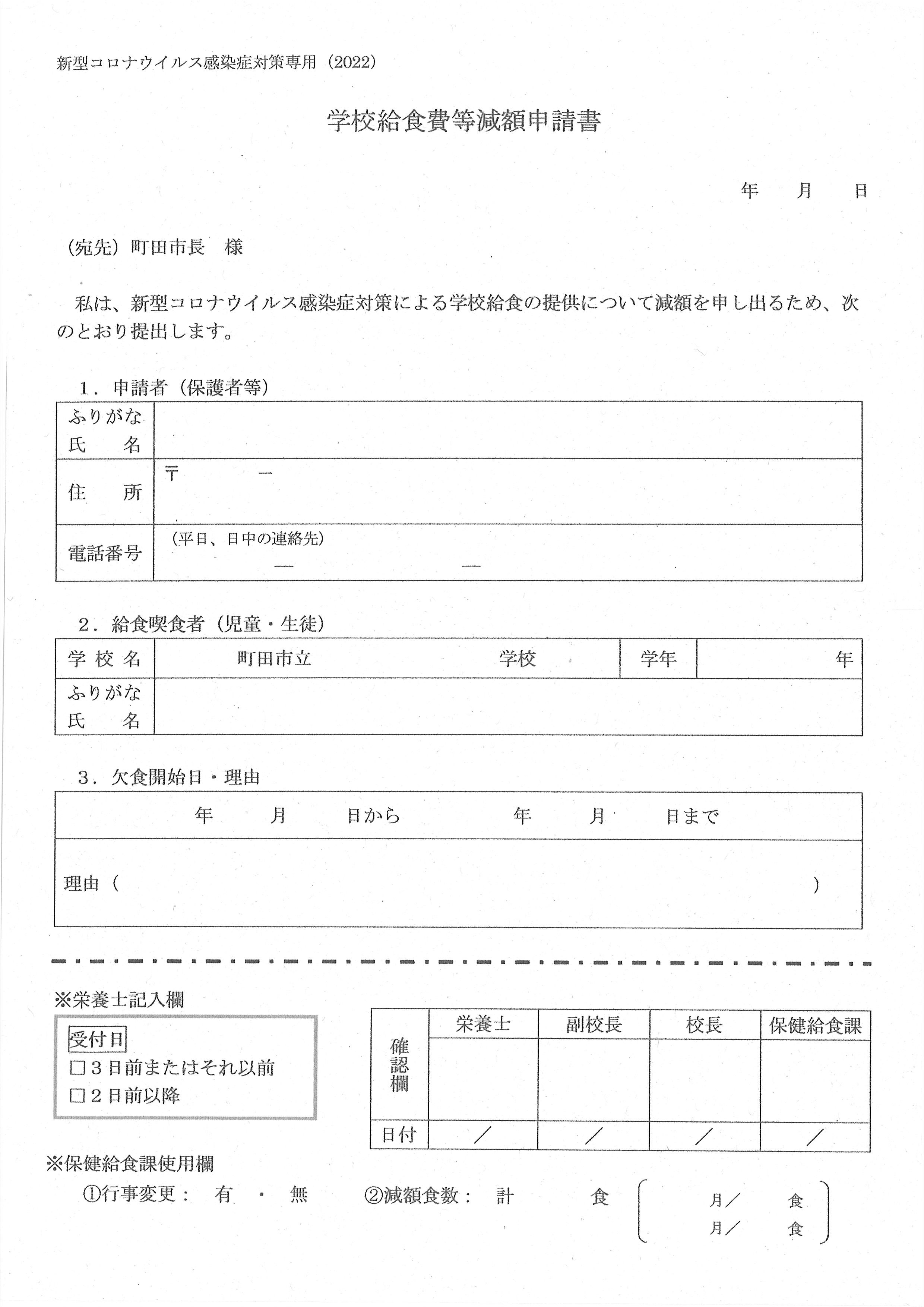 新型コロナウイルス感染対策専用 学校給食費等減額申請書 JPEG