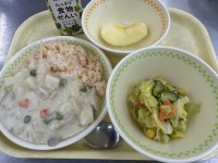今日は大人気のカレーライスを作りました。ルウは給食室手作りで、焦げて苦くならない...