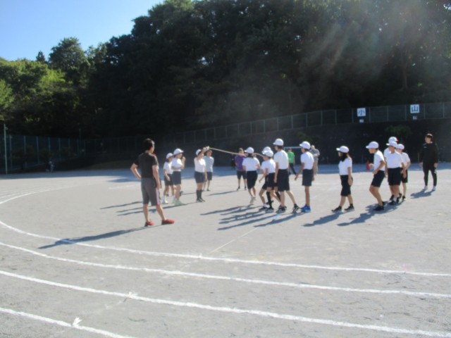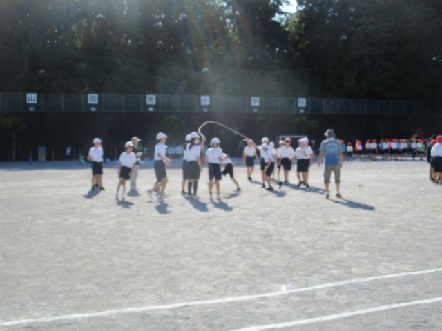 開会式の後、まずは長縄でした。3分間で何回跳べる