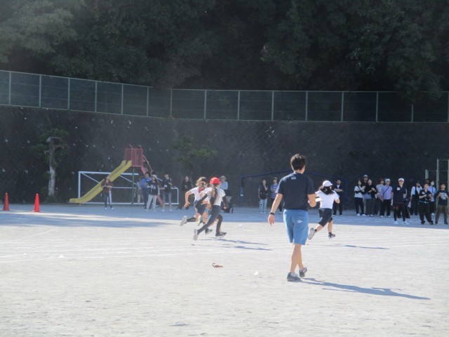 かを競いました。小山田小は白帽です。クラス対抗でし