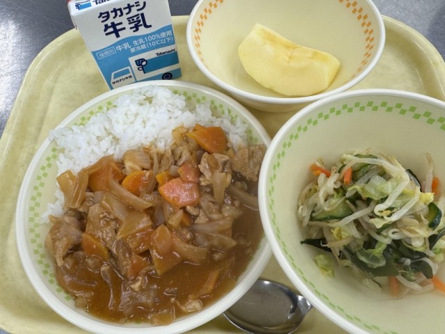 牛乳・ハヤシライス・わかめサラダ・りんご