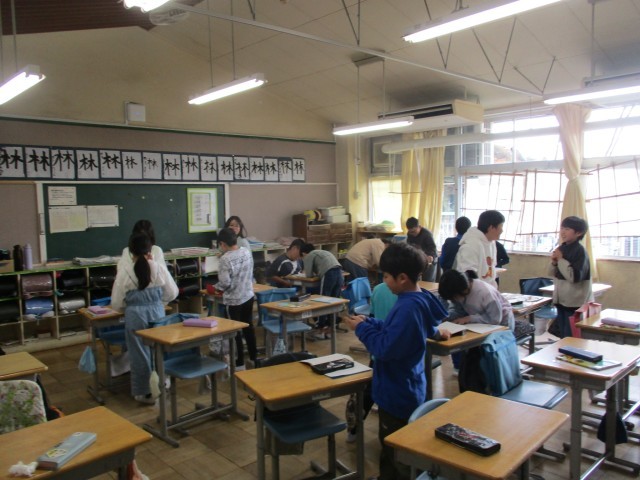 4年生が漢字バトルをしました。3枚の漢字カードを