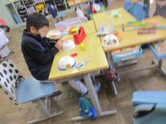 2年生が図工の工作で「ふぅ~ふぅ~Go!」という単元で