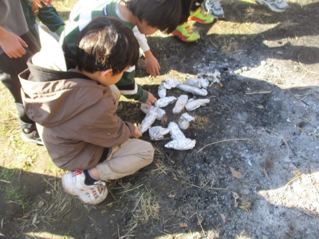 しました。焼き芋です。地域の方や保護者の皆様の力を