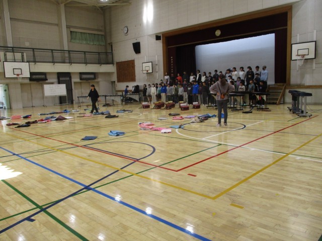 5,6年生合同で、10日(水)の連合音楽会に向けて