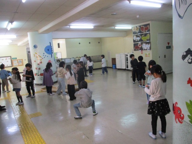 1年生は昔遊びの学習で、全員でコマ回しに挑戦しまし